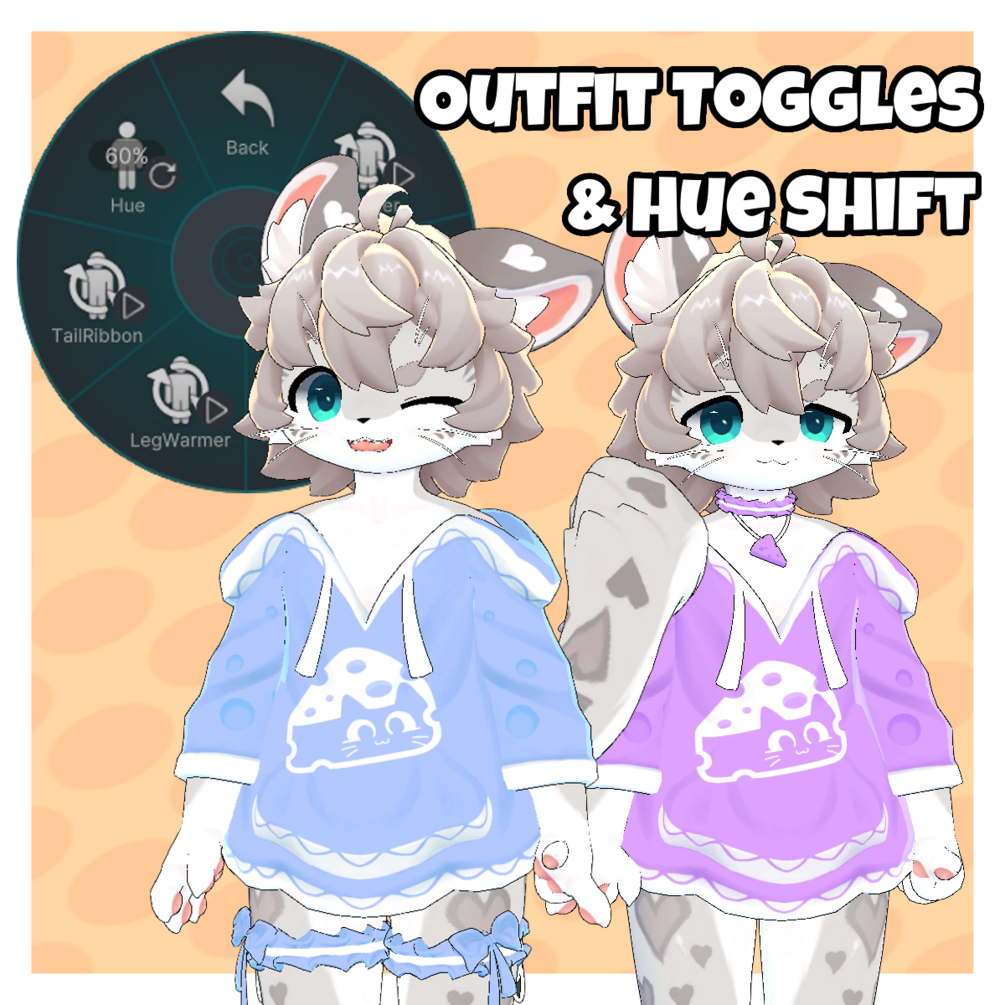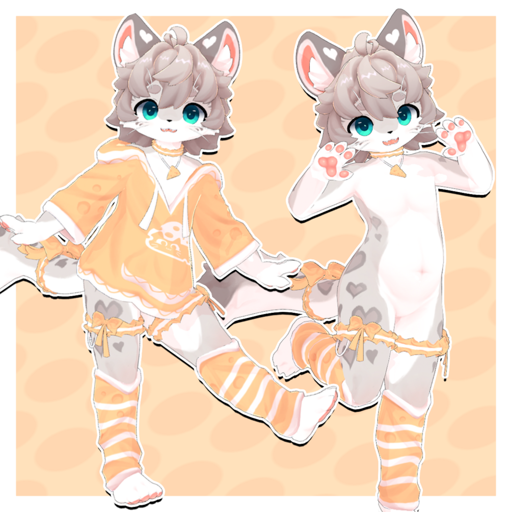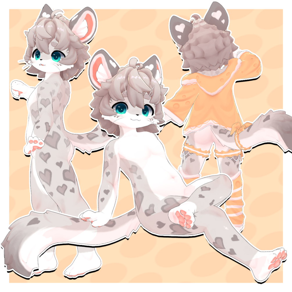 A snow leopard kemono avatar wearing a cheese-themed outfit🧀
